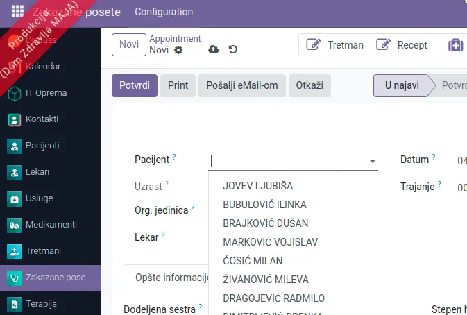 Evidencija novih pacijenata